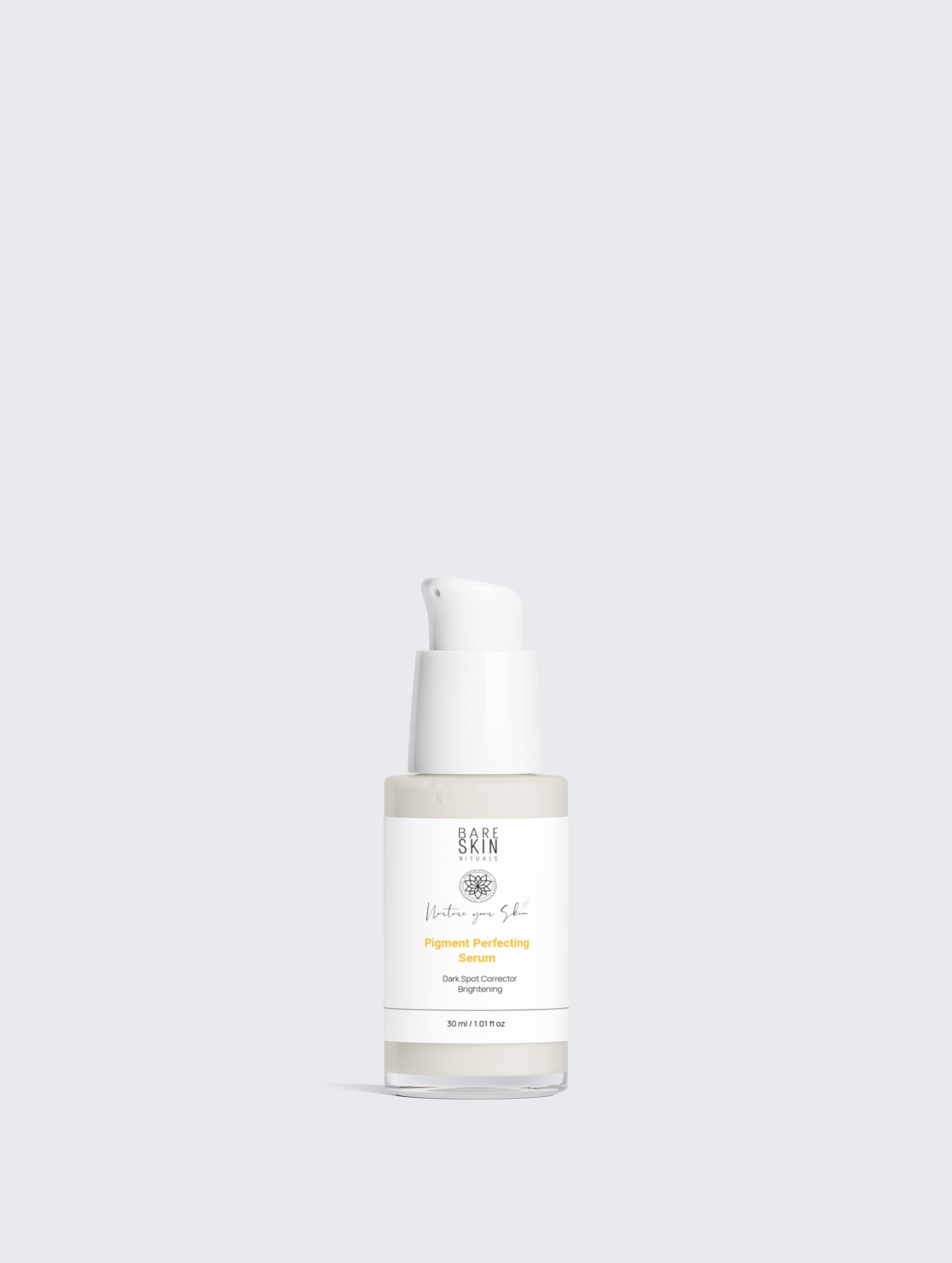 Our Pigment Perfecting Serum is designed to reduce the appearance of dark spots and promote an even skin tone. The lightweight formula hydrates and soothes while targeting pigmentation for a brighter complexion. Its scent adds an extra layer of indulgence, with earthy notes of vetiver root and wood, complemented by a soft, sweet almond background.